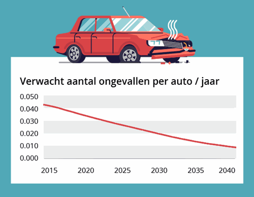 KPMG voorspelt 80 procent minder auto-ongelukken in het verkeer in 2040 ten opzichte van 2013. Omdat de schade per ongeval wel iets duurder is, komt de totale besparing uit op 60 procent. Dat kan niet anders dan resulteren in lagere premies. Als de bestaande verzekeraars hun premies niet laten zakken, dan zullen er nieuwe bedrijven komen die dat wel doen.