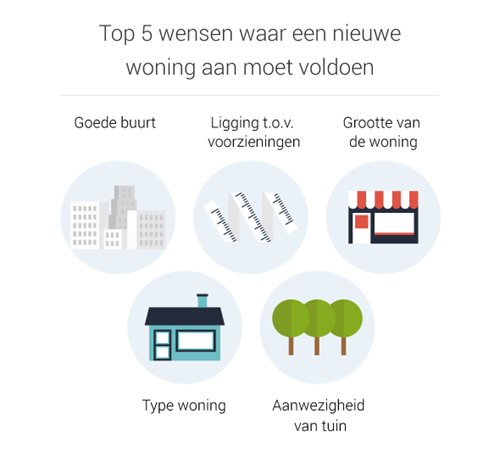 Neem vooraf de tijd om alleen, of samen met je partner, een lijstje te maken met de vijf aspecten waaraan je het meeste waarde hecht bij het bekijken van een nieuwe woning. Geef daarna die vijf aspecten een weging.  Een voorbeeld van hoe dit werkt.