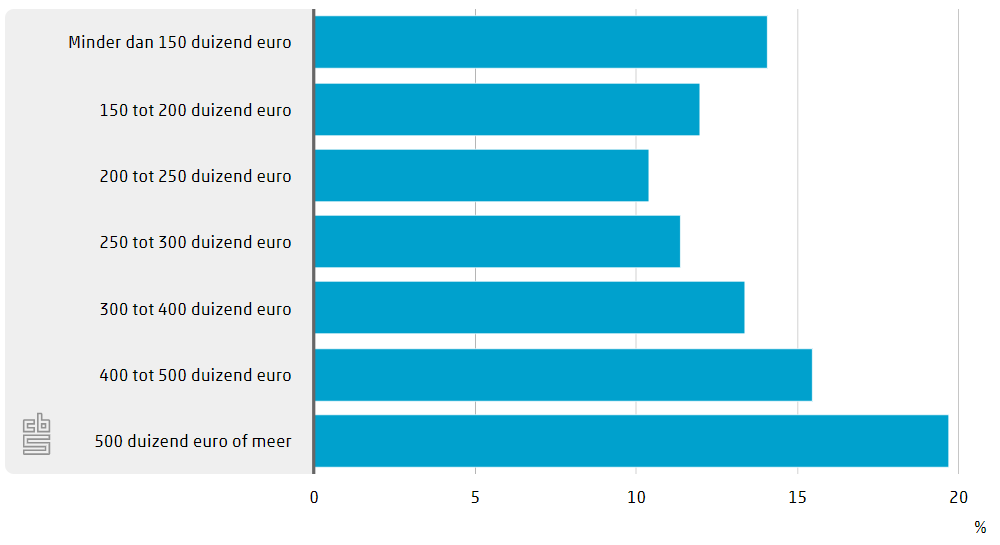 Huizen met een hoge WOZ-waarde zijn relatief vaak slachtoffer van inbraak. Bij een WOZ van € 500.000 of meer gaf 1 op de 5 bewoners aan dat er in de afgelopen vijf jaar bij hen is ingebroken, of een inbraakpoging is gedaan. Deze groep is ook vrij pessimistisch over de toekomst en acht de kans relatief groot dat er in het komende jaar wordt ingebroken.
