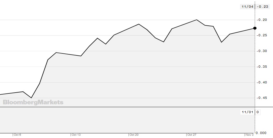 In de afgelopen maand is de rente op staatsleningen gestegen. Op 15 augustus stond de teller nog op - 0.59 procent. De actuele stand begin november is -0.23. De stijging wordt veroorzaakt door meer rust op de financiële markten. Het einde van de Brexit-chaos lijkt in zicht, Amerika en China hebben de strijdbijl tijdelijk begraven en economisch gaat het relatief goed. Hierdoor hebben investeerders minder interesse in een lening die niet eens iets oplevert en zijn er meer interessante alternatieven.