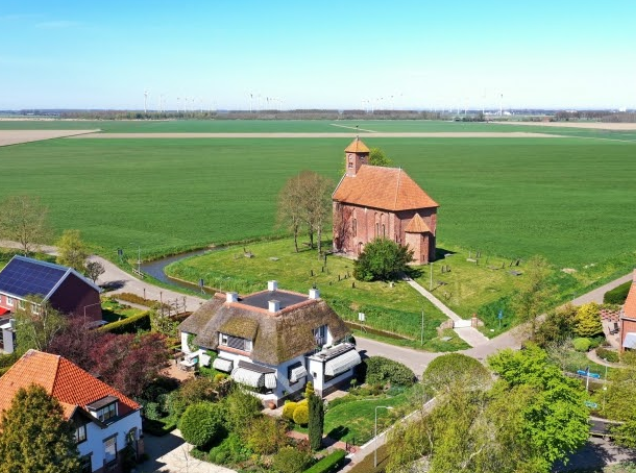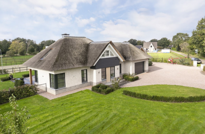 In het noorden van het land vinden we een ‘betaalbaar’ landhuis. De woning heeft een rieten dak, twee badkamers, sauna en dubbele garage. Vanuit je woning heb je zicht op een pittoreske middeleeuwse kerk. Verder kijk je uit over verschillende landerijen. De woning staat aan het rand van Woldendorp, met een tuin op het zuiden. De prijs is ook voor niet miljonairs behapbaar.
