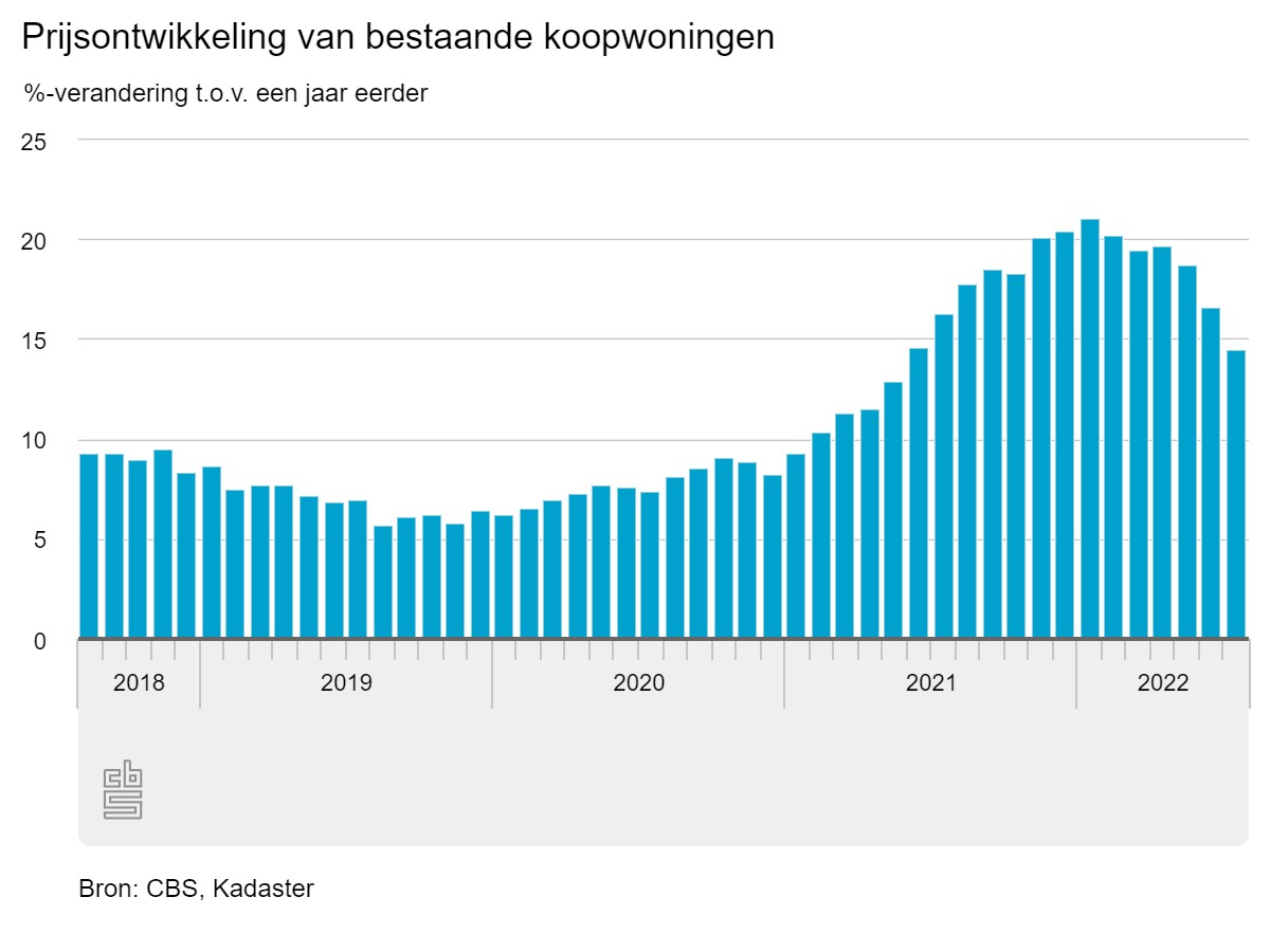 In juli waren koopwoningen 14,5 procent duurder dan een jaar eerder. Hiermee vlakt de explosieve stijging verder af. In de voorgaande maanden was er sprake van een sterkere groei. Zo bedroeg de jaar-op-jaar stijging in februari zelfs meer dan 20 procent. Met de nodige verkoeling komt er meer lucht voor kopers, al blijft de prijs hoog.